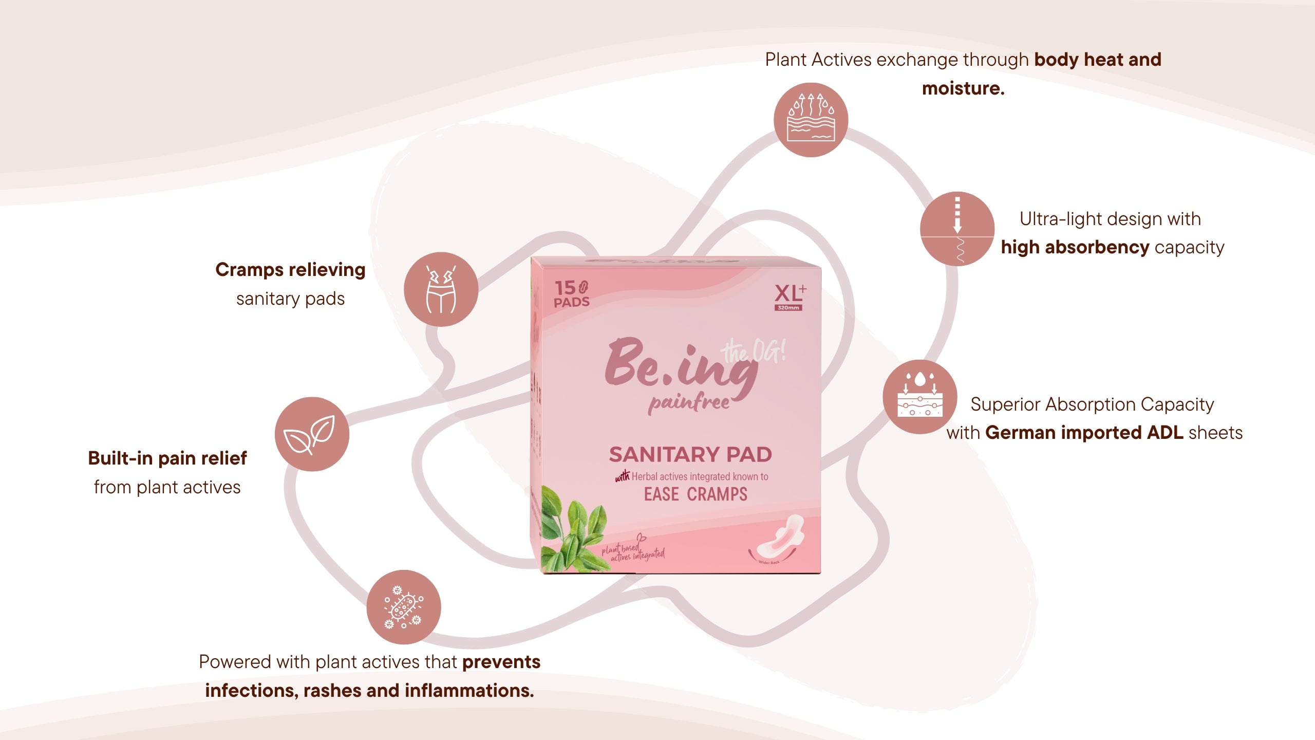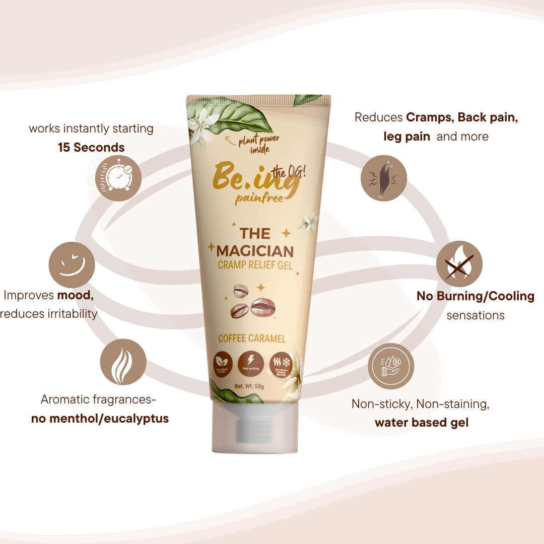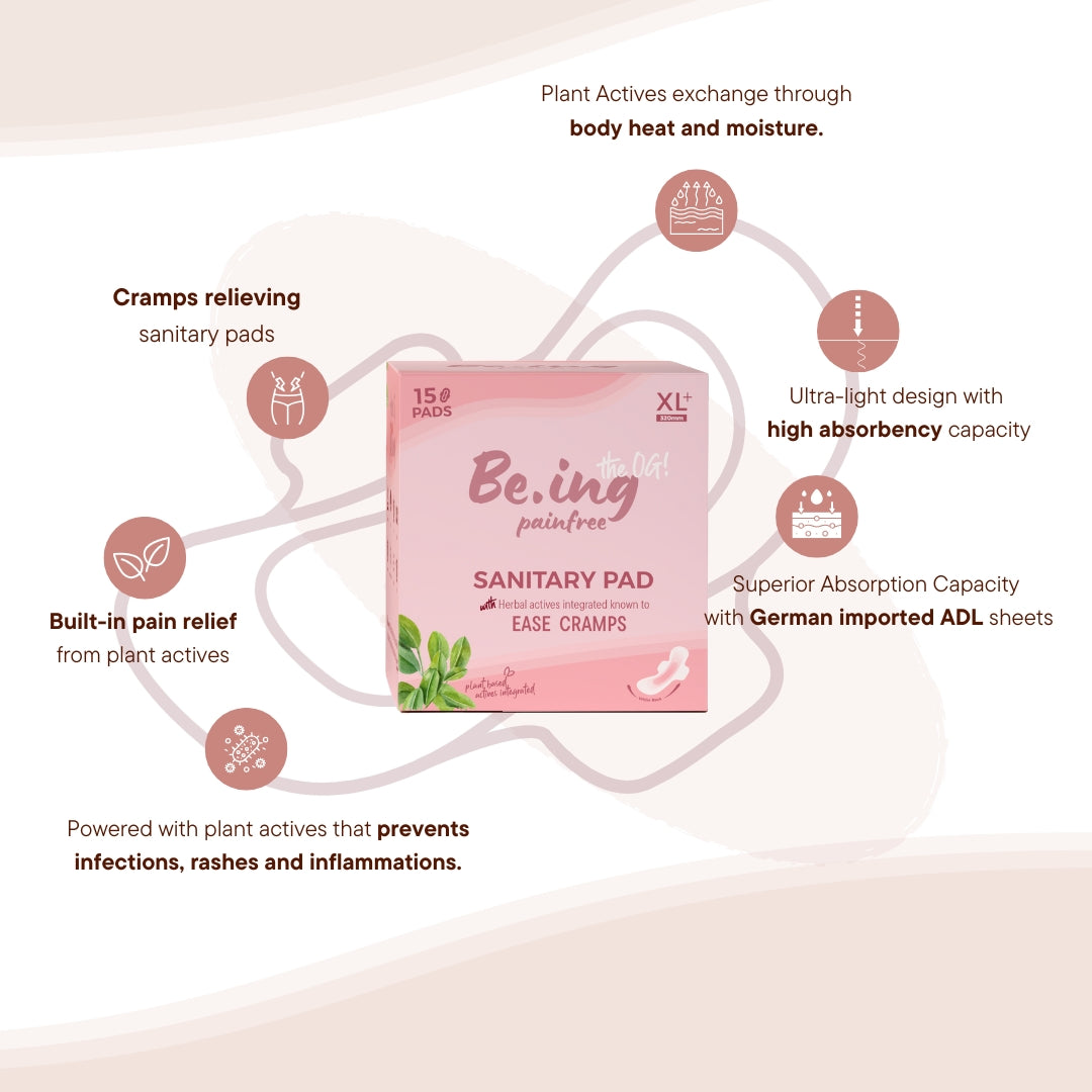 - Painfree sanitary pads for sustained 6+ hours cramp relief